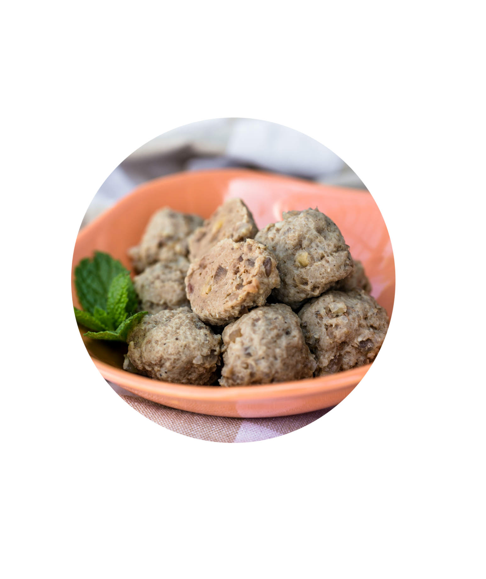 Springy, beef filling, seasoned with garlic, shallots, and more.